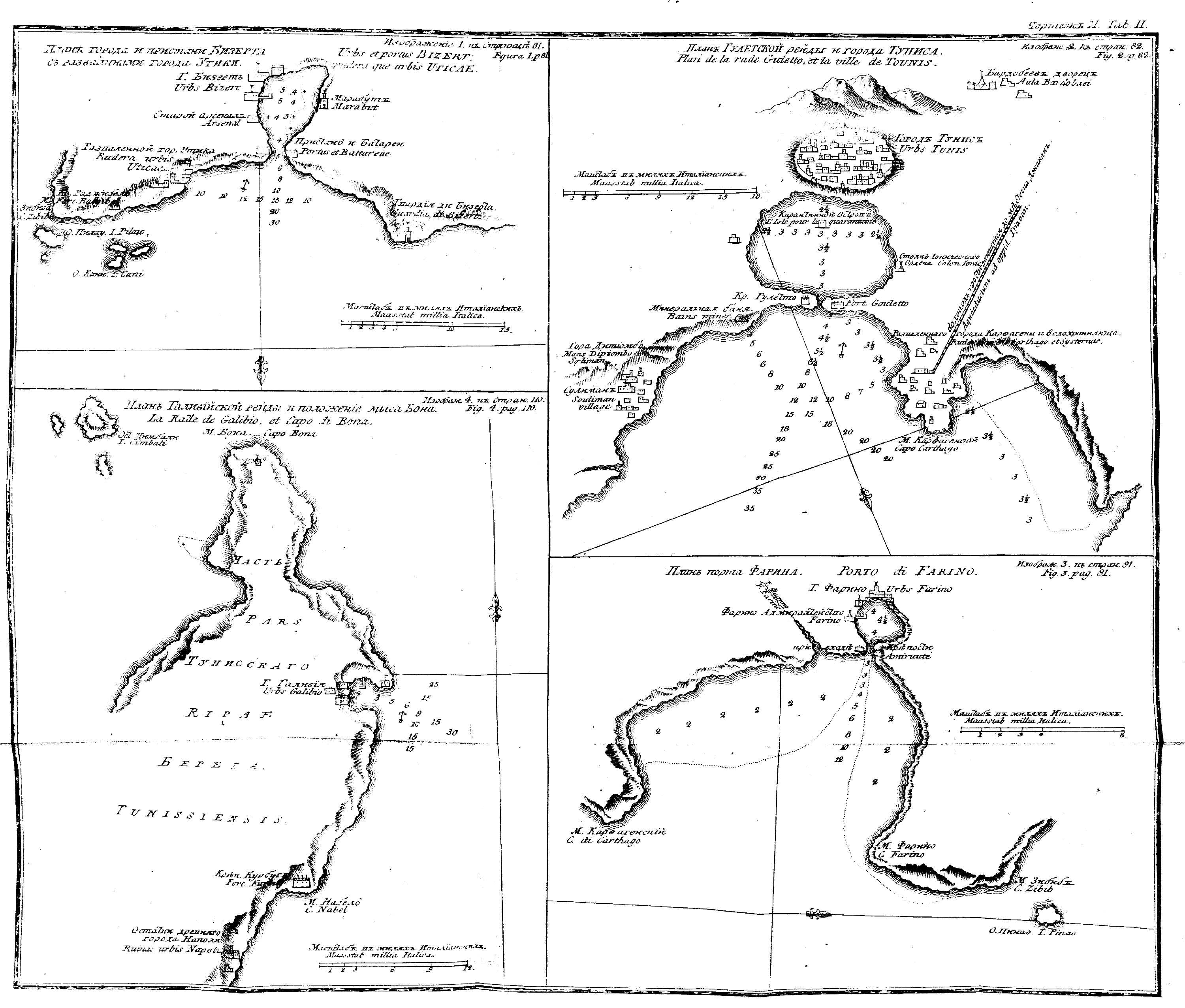 План залива Мамета и города Сузы; острова Зербы; города и порта Бона.