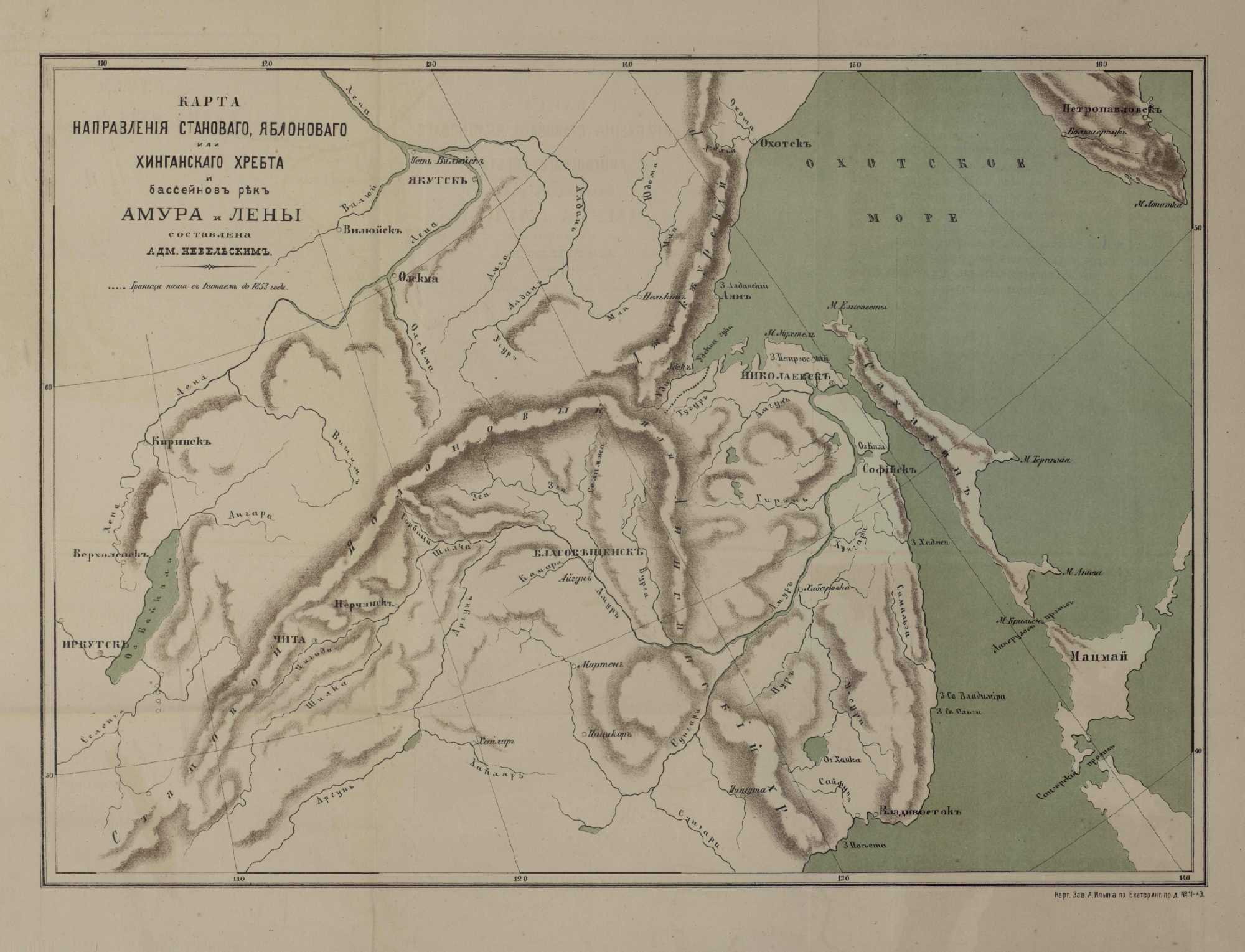 Карта Станового, Яблонового хребтов и бассейна Амура и и Лены