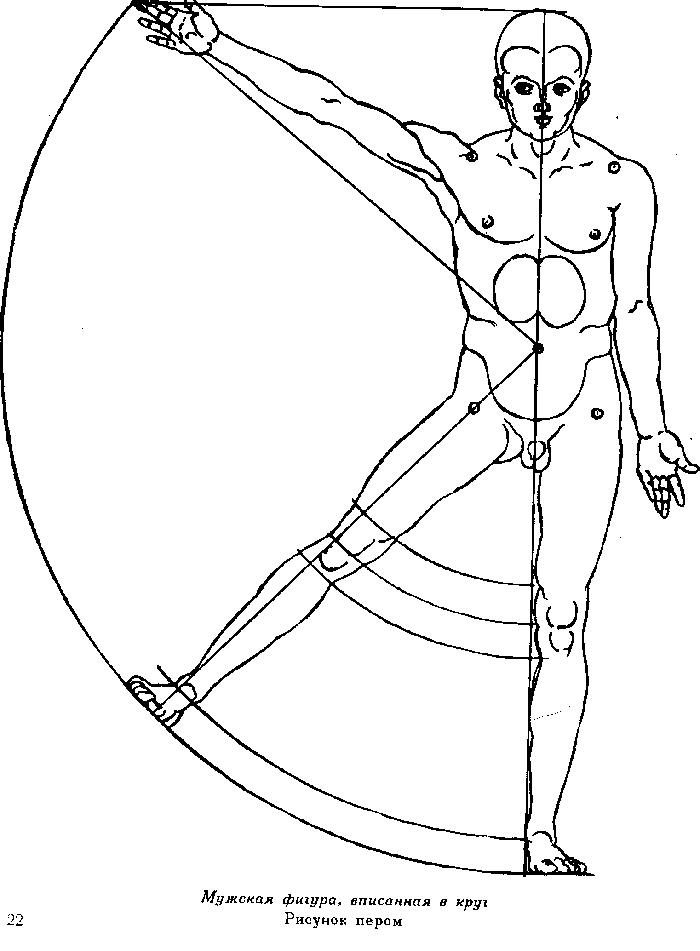 7. Мужская фигура, вписанная в круг. Рисунок пером. Дрезден, Публичная библиотека.