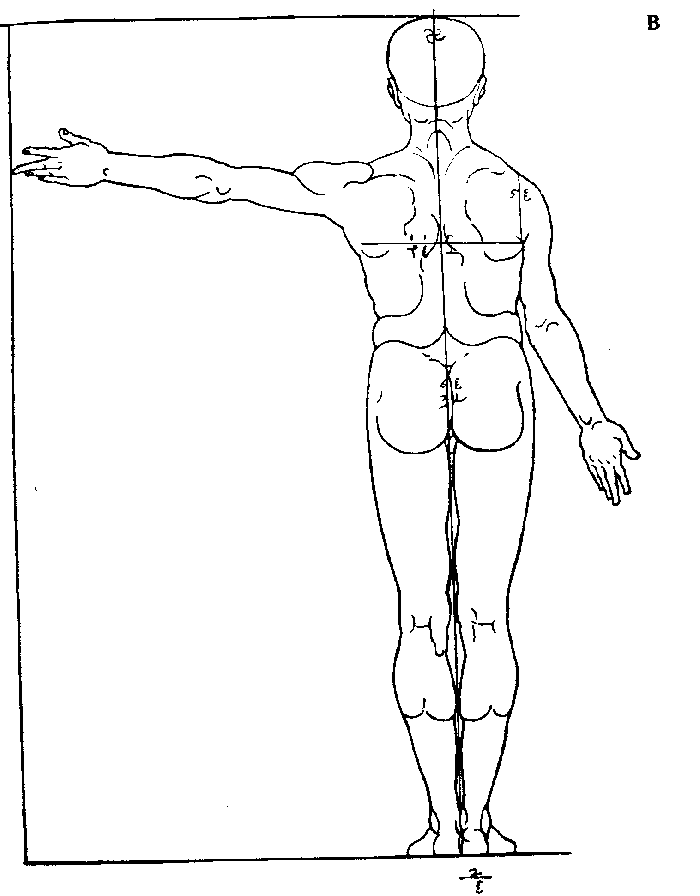 63. Мужская фигура высотою в восемь голов. Вид сзади.