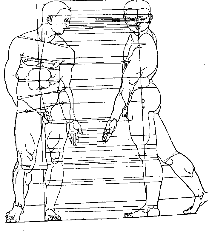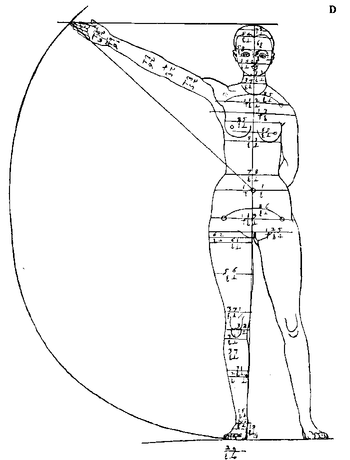64. Мужская фигура высотою в десять голов. Вид спереди.