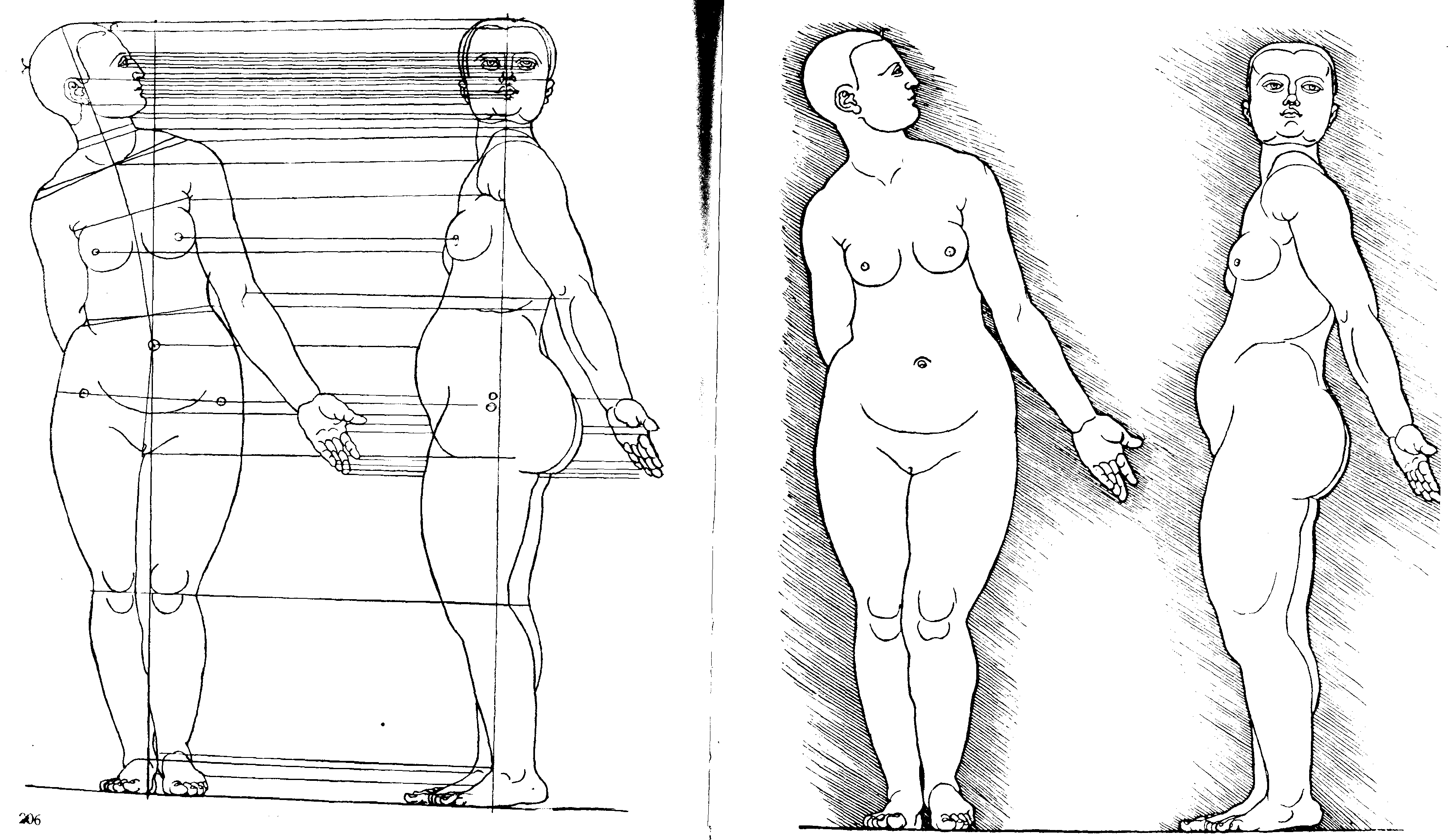 6. Построение женской фигуры при помощи циркуля. Рисунок пером. Дрезден, Публичная библиотека.