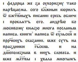 Федорца же, называемого так за его поношение [церкви], блаженный Кирилл по божественному писанию в ереси обличил и проклял. Андрею, боголюбивому князю, много посланий написал. На основе евангельских и пророческих книг много написал повестей на темы праздников божественных, душеполезными их [9] |