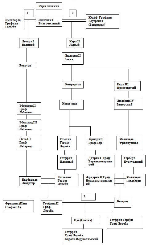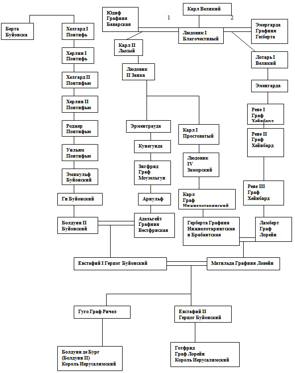 Иллюстрация 3. Происхождение Готфрида Буйонского от Карла Великого.