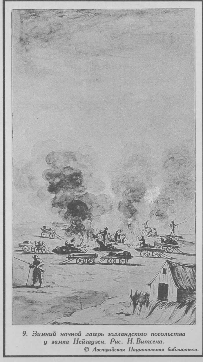 Зимний ночной лагерь голландского посольства в замке Нейгаузен (47 кб.)