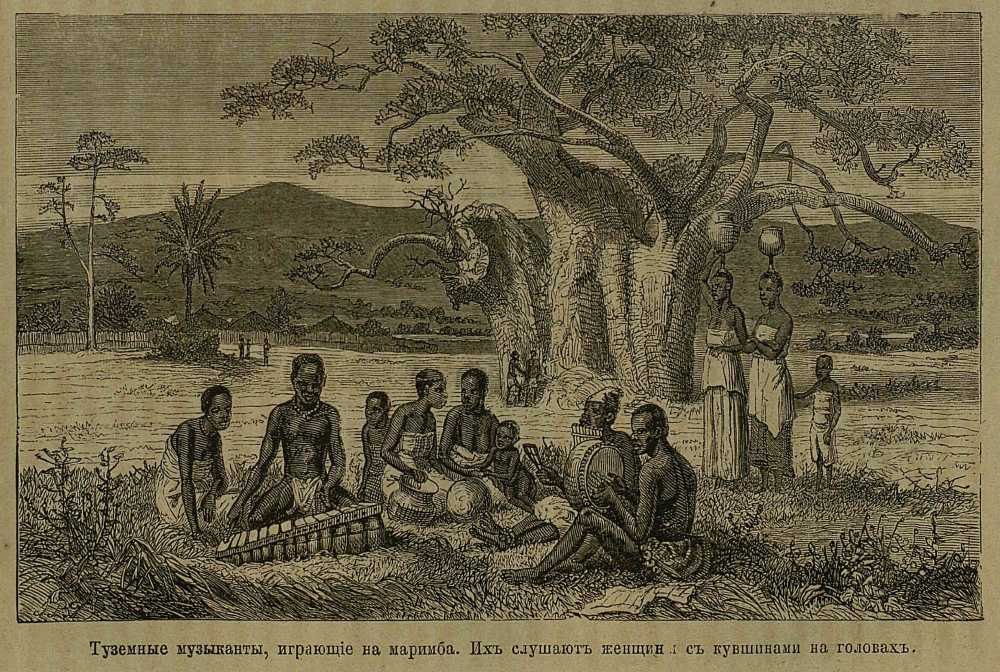 Туземные музыканты, играющие на маримба.