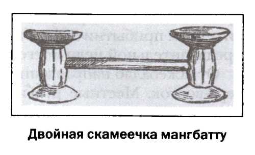 Деревянный барабан мангбатту и сигнальные рожки