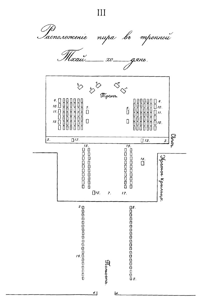 Расположение пира в тронной Бао-хо-дянь. (56 кб.)