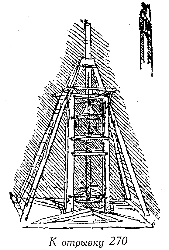 - (Поднимаются вместе с винтом — так как с последним соединена дощатая площадка, на которой находятся работающие. Сверлящие снизу вверх сверлильные машины стали известны только в 1798 г. (Пешель в Дрездене). Особенно существенны во времена Леонардо сверлильные машины были ввиду того, что в водопроводах уже с древних времен (ср. Плиний, Н. N., XVI, 79) применялись деревянные трубы. Чугунные водопроводные трубы появились лишь во второй половине XVII в.)