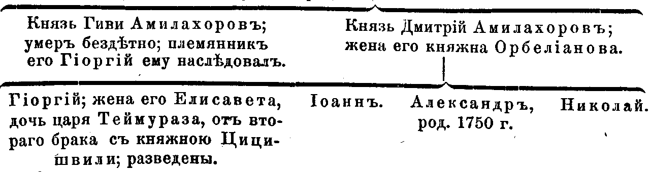 С ним, и по следам его, выехало в Россию архиереев 5, архимандритов 5, игуменов 6, протопоп 1, архидиакон 1, протодиакон 1, попов 8, диаконов 7, поддиаконов 3, церковников 3, монахов 2. Князей и дворян, с ним же и скоро после его, по 1738 год, выехало 43 человека, и все они получали содержание от казны. Между ими, из грузинской и имеретинской нации были: князь Дмитрий Орбелов, свояк царю Вахтангу, родственник царю имеретинскому и в Кабарде имеющий знатных и первых князей свойственников; князь Нодар Баратов, князья Герасим и Шиош Джаваховы, князь Дмитрий Шаликов, князь Мамука Давыдов, князь Мелхиндек (Мелхиседек?) Баратаев, князь Вахтанг Туркистанов 102, князья Салаговы, Херхеулидзевы, князья Амилахоровы 103, дворяне: Борис Егоров, Гаврила и Иван Мечеварнановы, Михаил и Матвей Чхейзены, Давид Тухарелов.