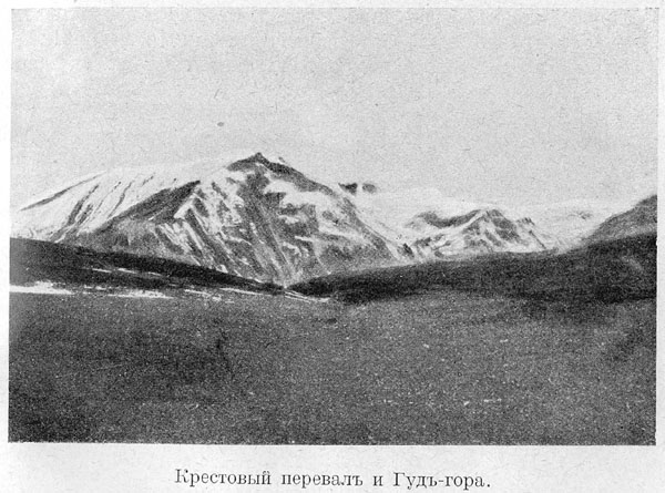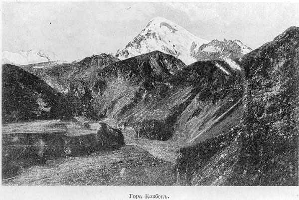 Гора и снеговые поля между станцией Коби и Крестовым перевалом.