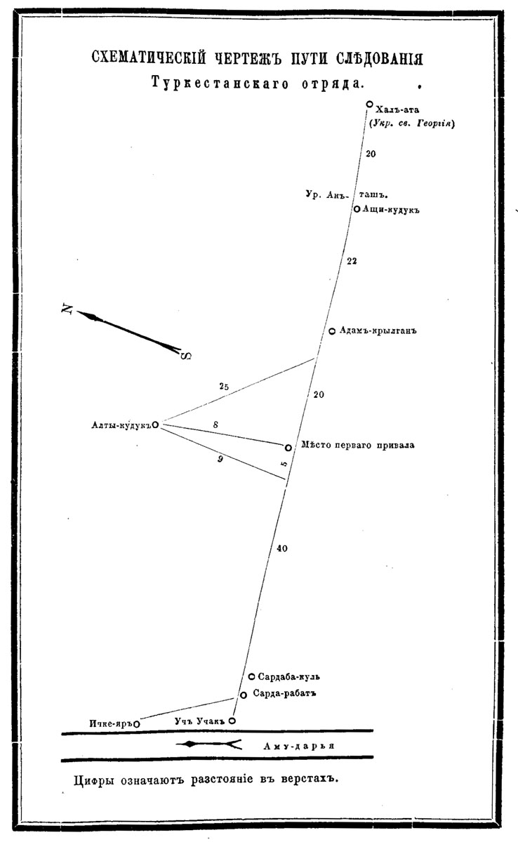 Схематический чертеж пути следования Туркестанского отряда. (90 кб).