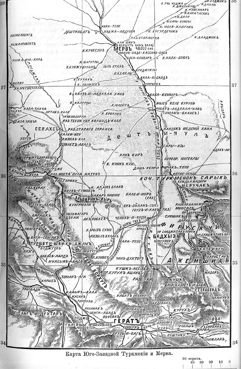 Карта Юго-Западной Туркмении и Мерва. (387 кб).