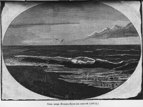 Вид озера Иссык-Куля (на высоте 5400 ф.). (51 кб).