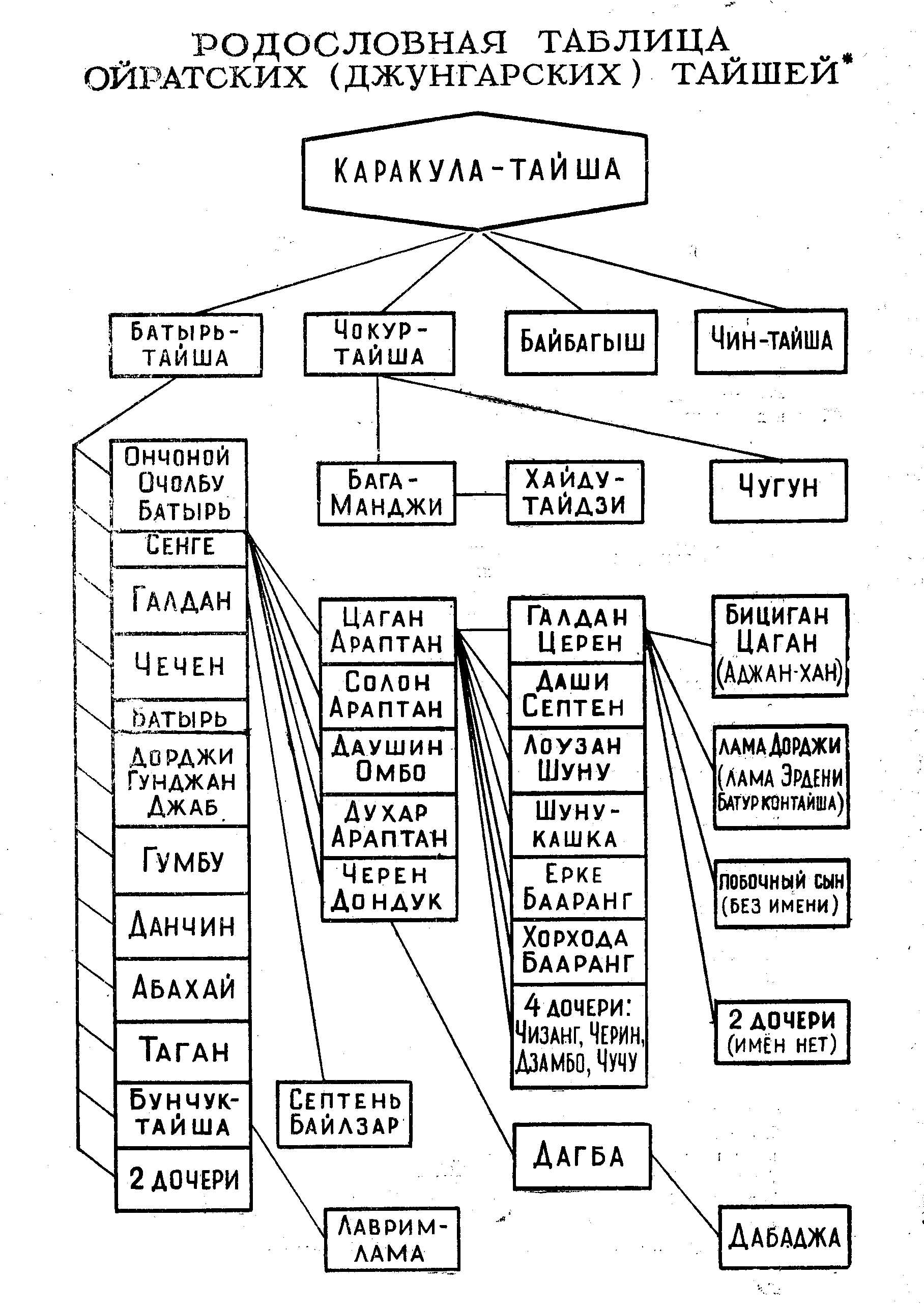 Родословная таблица ойратских тайшей XVII и XVIII вв.