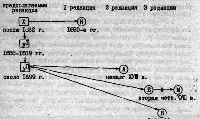 2. Достаточно указать на редакции по Архивному, Ярославскому и позднему Спасо-Прилуцкому спискам, См.:, ЦГАДА. Ф. 188. Оп. 1. Л. 174-190; ГБЛ. Ф. 344. А 248/6208/4. 171-216) ГИМ. Уварова 48, 28, Л. 1-68 об., 60-136 (здесь смешаны ранний и поздний списки).