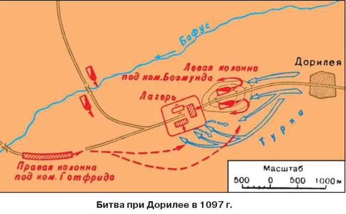 6. Битва при Дорилее — сражение, произошедшее 1 июля 1097 года , между войском крестоносцев и объединёнными войсками султана Рума Кылыч-Арслана I и эмира Каппадокийского Гази ибн Данишменда.