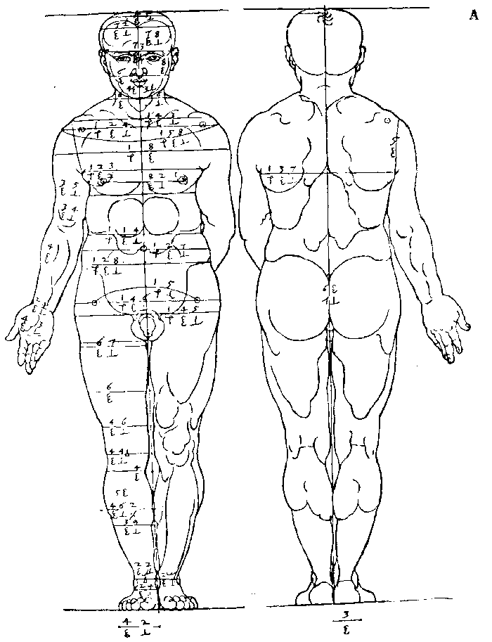 64. Мужская фигура высотою в десять голов. Вид спереди.