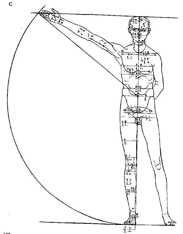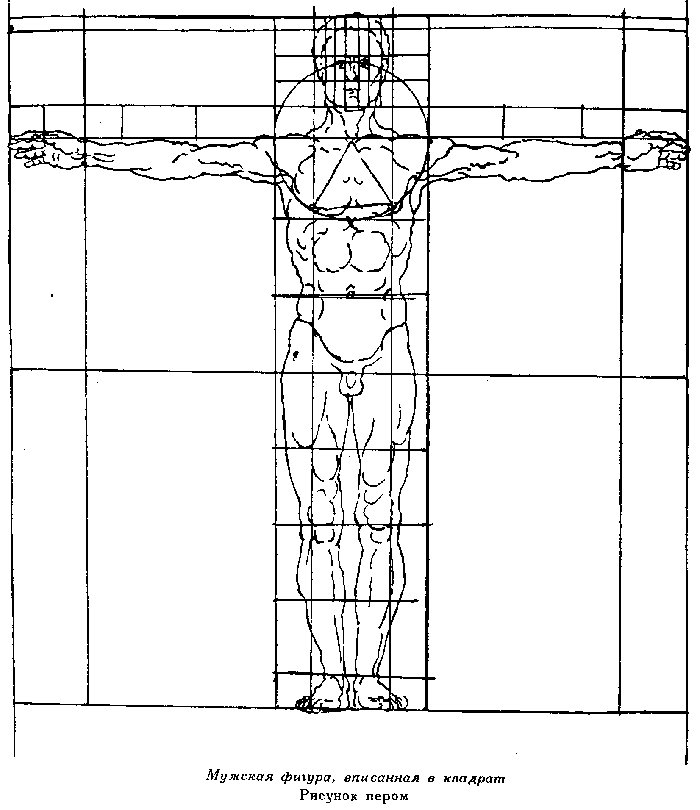 8. Мужская фигура, вписанная в квадрат. Рисунок пером. Дрезден, Публичная библиотека.