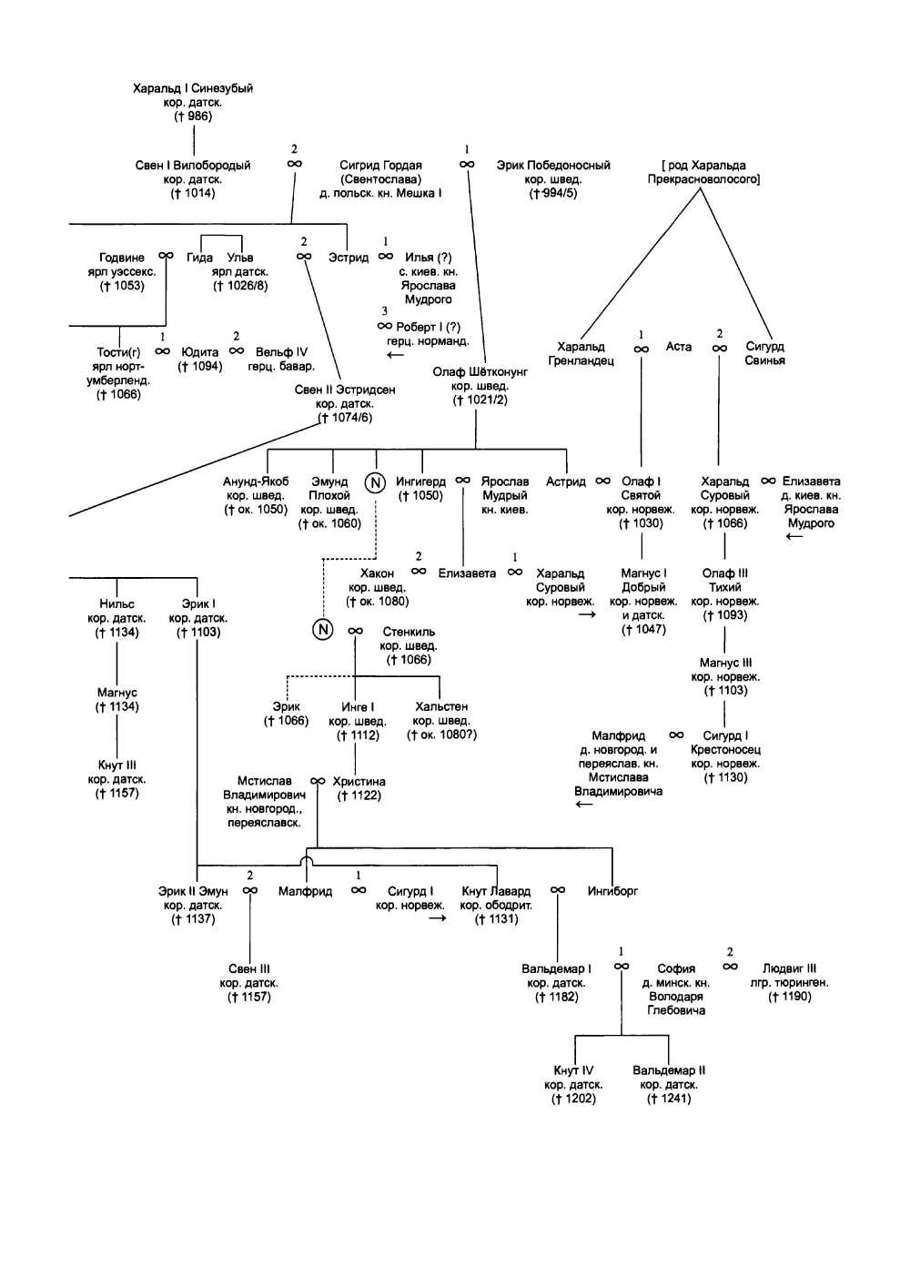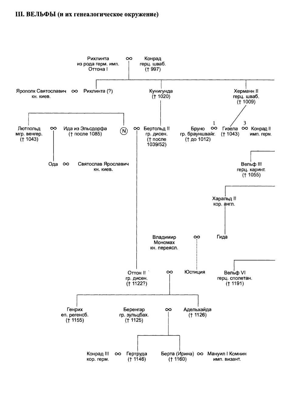 В легенде мы старались, насколько то было нам доступно, учесть актуальный статус названного лица. Иными словами, в таблице VII, где Владимир Мономах фигурирует только как супруг Гиды, он назван князем переяславским, потому что при жизни Гиды Владимир киевским князем еще не был. Но в таблице IXb Мономах обозначен, естественно, как князь киевский.