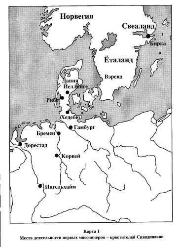 Места действия миссонеров-крестителей Скандинавии.