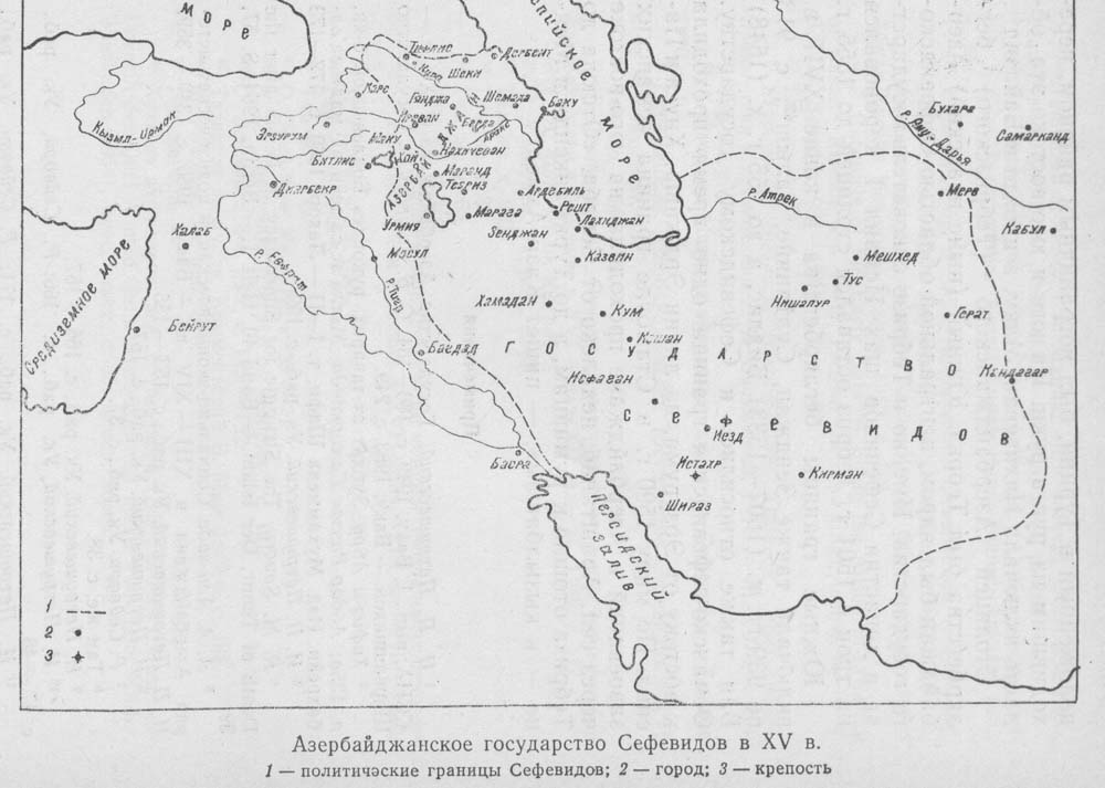 Государство Сефевидов в XVI в. (80 кб). Источник: Историческая география Азербайджана Баку. 1987