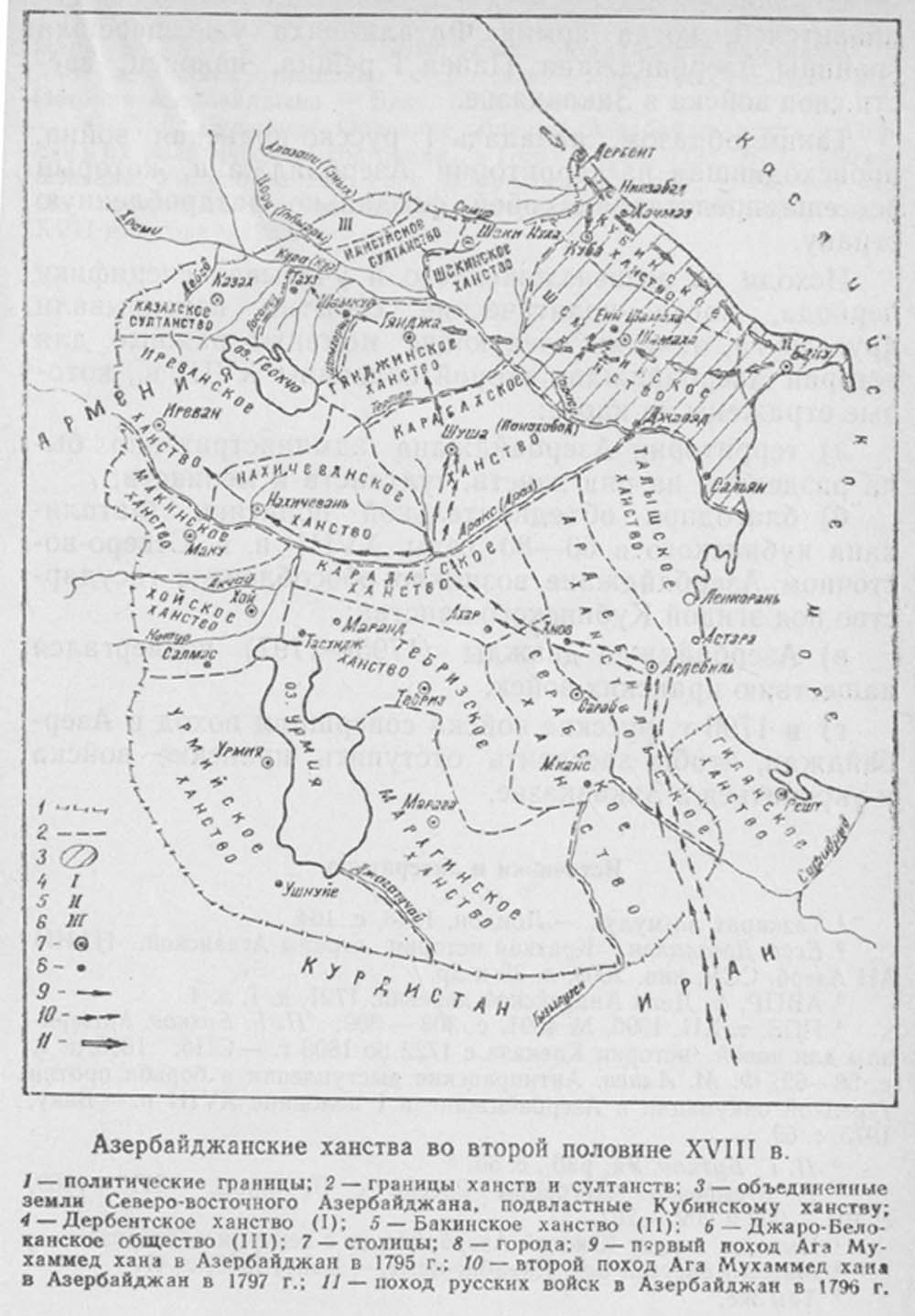 Азербайджан во второй половине XVIII в. (124 кб). Источник: Историческая география Азербайджана Баку. 1987