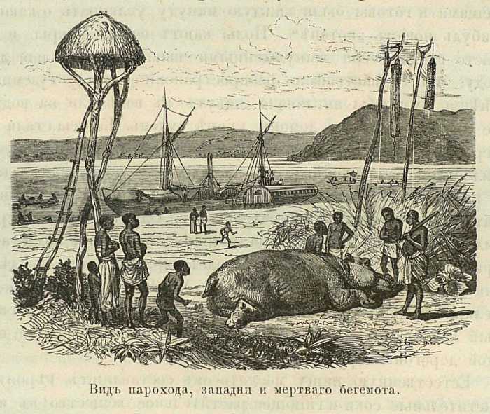 Вид парохода, западни и мертвого бегемота.