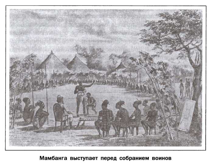 Мамбанга выступает на собрании воинов