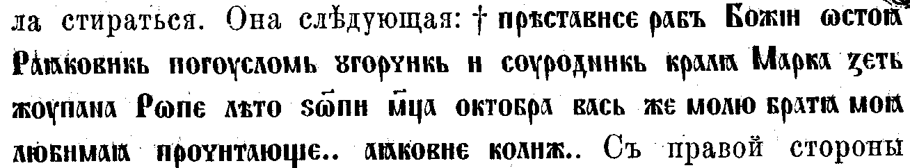 прах сродника Марка Кралиевича. Надпись его