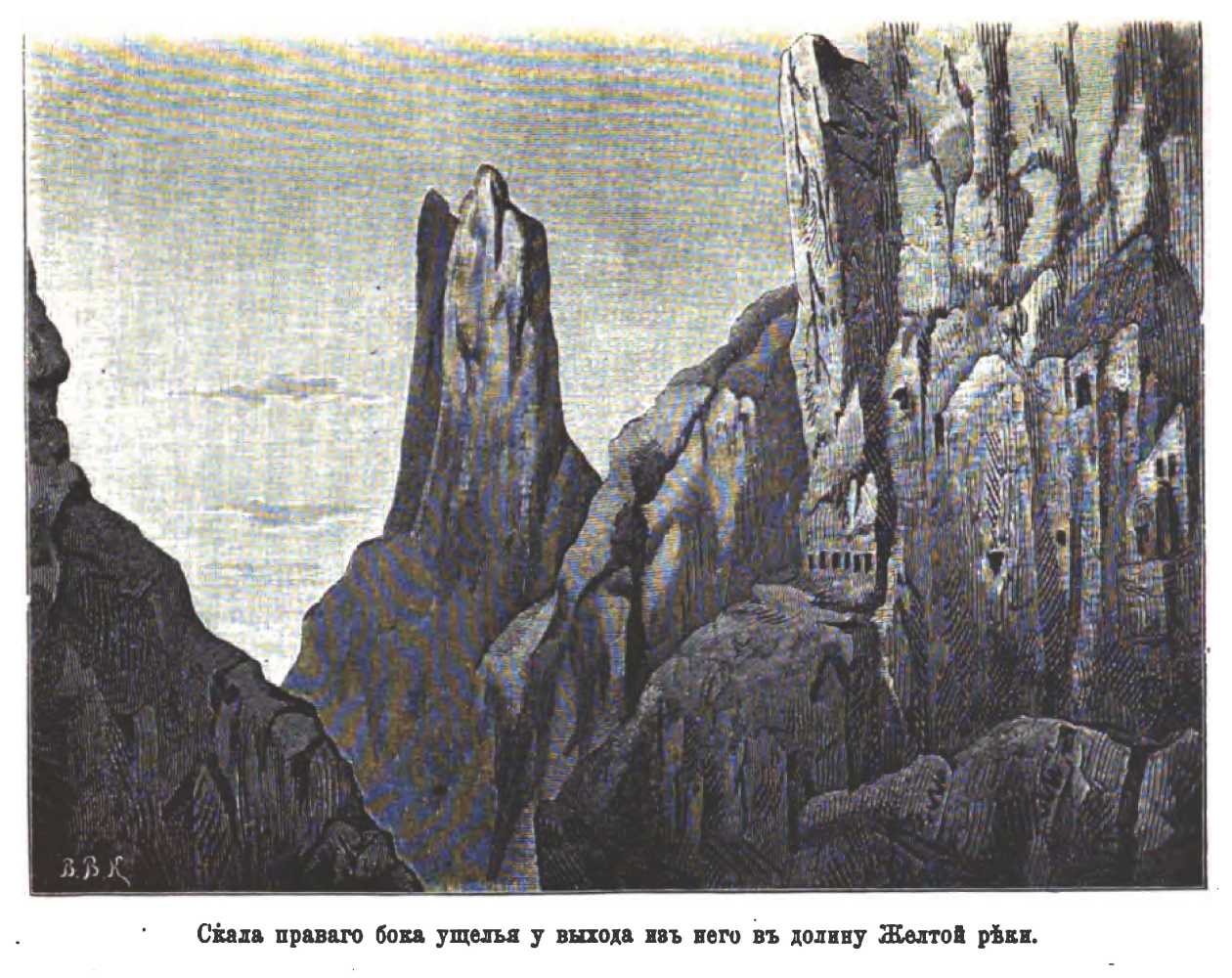 Скала правого бока ущелья у выхода в долину Желтой реки. (142 кб.)