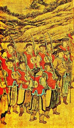 ЗаключениеВ середине XVIII века цинская Восьмизнаменная армия представляла собой грозную силу, тотально доминирующую на просторах Центральной Азии. Система организации, комплектации, вооружения и снабжения цинских войск полностью отвечала потребностям ведения войны в условиях степной и пустынной зоны. Немногочисленные (Согласно указа Цяньлуна от 13 июля 1754 г. на всю кампанию выделялось всего 48000 солдат. См. «Международные отношения в Центральной Азии. XVII-XVIII вв.», т. 2, док. № 141, с. 21) войска империи в течение 5 лет смогли полностью уничтожить Джунгарское государство и разгромить теократический режим ходжей секты актаглык в Восточном Туркестане. Боевой дух войск был высок и в многочисленных сражениях цинские воины, зачастую находившиеся в меньшинстве, проявляли мужество и героизм, свидетельством чему является грандиозная серия из 100 портретов, заказанных императором Цяньлуном для павильона Цзыгуангэ.