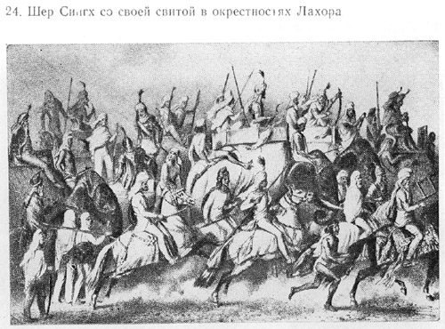 Шер Сингх со своей свитой в окрестностях Лахора. (94 кб.)
