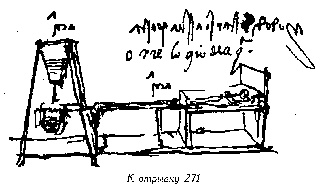 (Смертоносные орудия странно контрастируют с созерцательной похвалой свету из средневекового трактата Иоанна Пекама (273). Но недаром Леонардо выписал и перевел из Пекама этот отрывок. Та первостепенная роль, которая принадлежит зрению, проступает у самого Леонардо повсюду. "Живопись — мать перспективы" (274), "перспектива — мать астрономии" (275), похвала солнцу (276) — неподвижному (277) — которое некоторые из древних хотели принизить (ср. 278-281), все это — один круг идей. Если солнце — источник тепла (282-284), то тепло — источник жизни и движения (285-287), и полуанимистическая теория движения влаги под животворным действием тепла строится на аналогии тела земли и тела человека (288-291). Но если Леонардо анализирует здесь, как вода под действием тепла движется на вершины гор, то сам совершенно иначе (механически, хотя и ошибочно) проектирует подъем воды на горные вершины (292), опять возвращаясь в отрывках 293 и 294 к движущей силе тепла и пара, а в отрывке 295 к аналогии земли и человека)