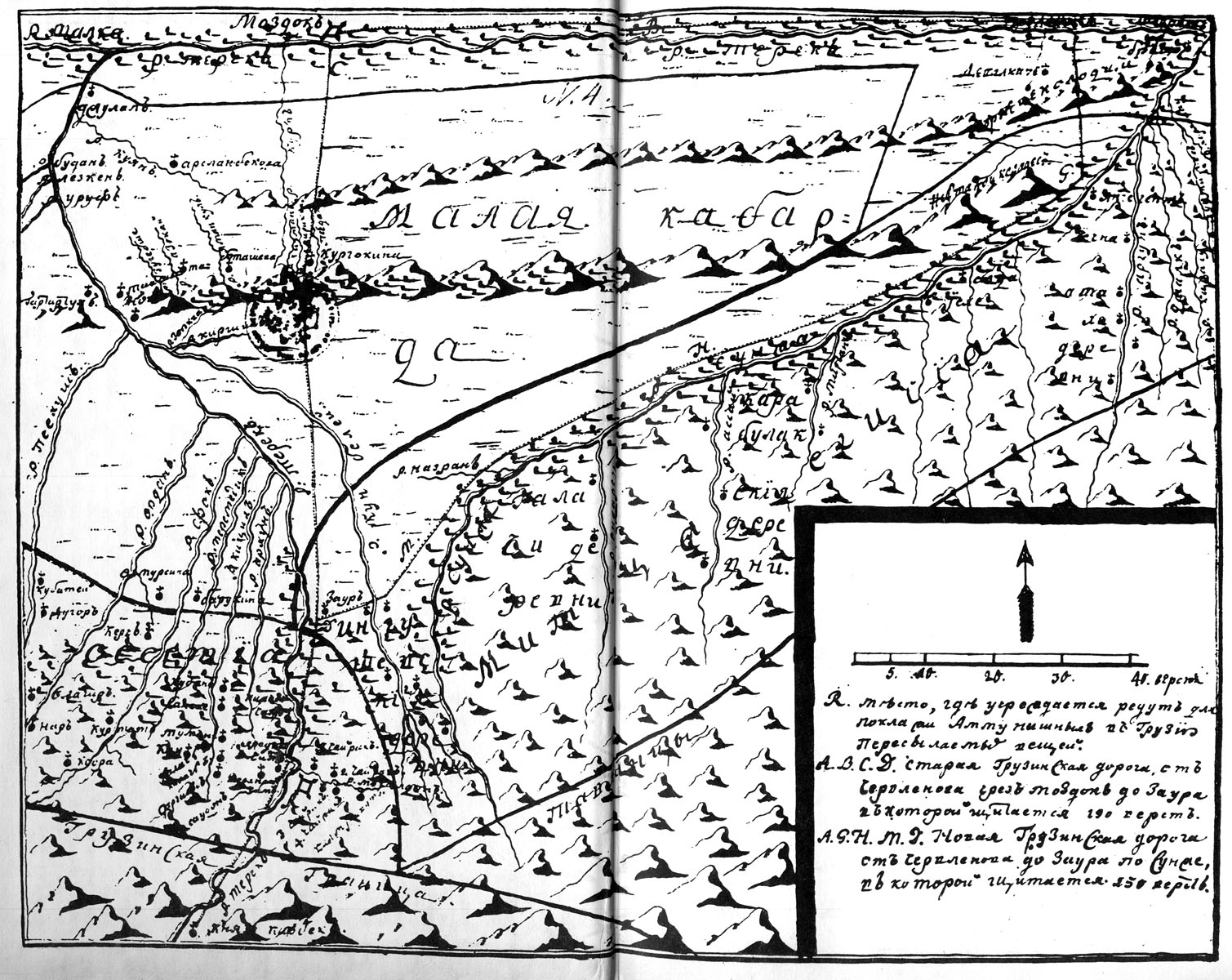 Карта Малой Кабарды, части Осетии, Чечни и Ингушетии. ЦГАДА, ф. 192, оп. 1. карты Кавказа, № 12.