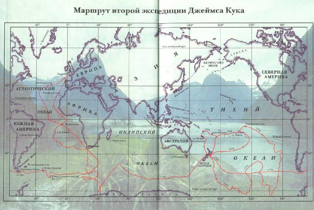 Маршрут второй экспедиции Джемса Кука.