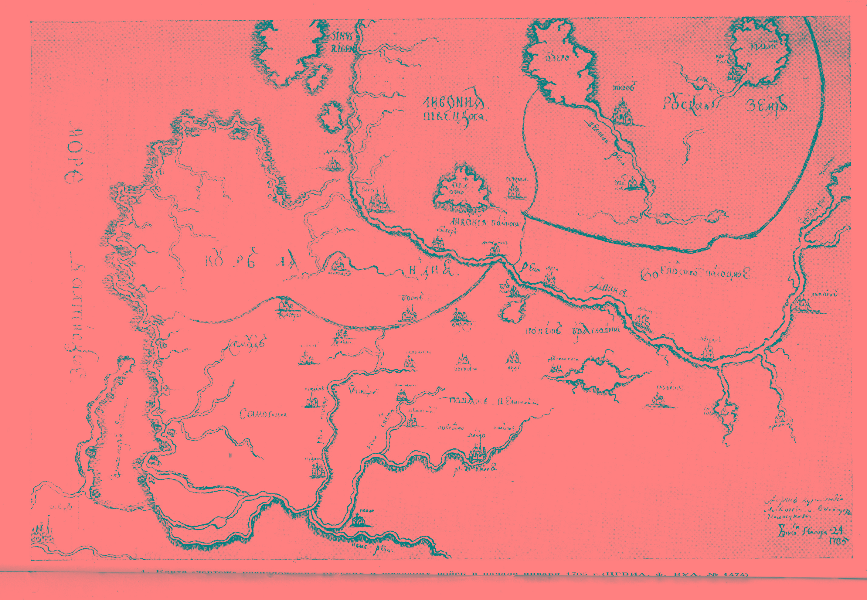 Карта чертежа расположения русских и шведских войск в начале января 1705 г. (ЦГВИА, фонд ВУА, № 1474)