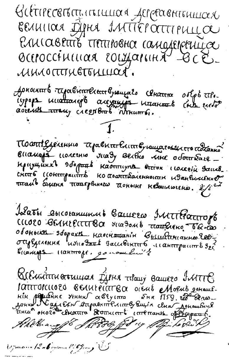 ДОНЕСЕНИЕ ОБЕР-ПРОКУРОРА А. И. ГЛЕБОВА ИМПЕРАТРИЦЕ ЕЛИЗАВЕТЕ ПЕТРОВНЕ