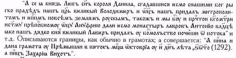 В Львове я видел одну грамоту князя Льва, от которого имени Львов имеет свое начало и имя. Грамота сия так начинается: